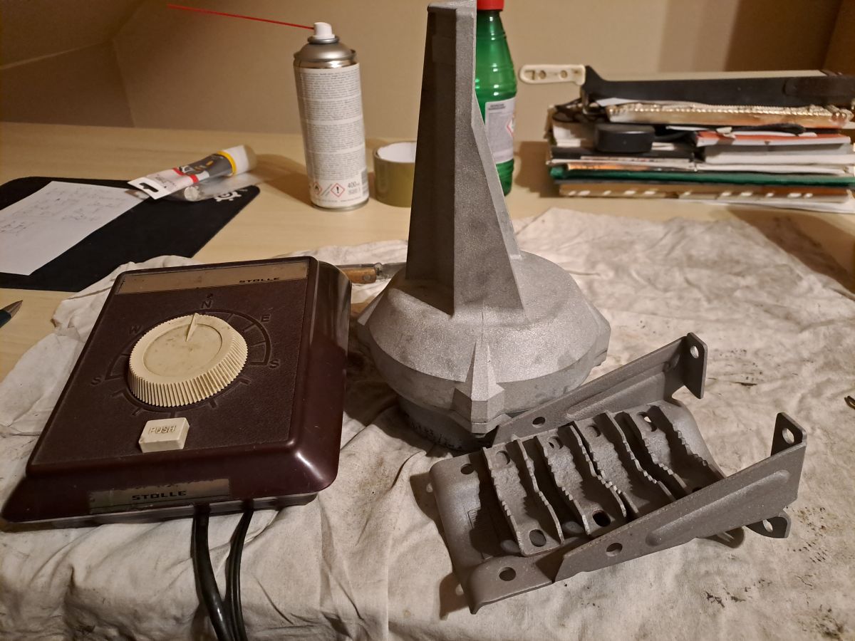 Sprzedam rotor azymutalny 360 stopni RT-50 hiszpańskiej firmy Tagra z roku 1980 i sterownik Stolle bez kabla połączeniowego / kabel 5 żył/ . Rotor w pełni sprawny po przeglądzie i konserwacji używany do sterowania antenami na 2m i 70 cm na satelity współpracujac z łozyskiem oporowym / moja konstrukcja /.Anten w sumie było 4 szt - 2 na 2m 6 el. i 2 na 70cm 2x13 el. Wcześniej bez problemu obracał 2x9el. na 2m. Rotor po modernizacji - dodałem dodatkowe złącze w celu oddzielenia potencjometru od silnika / nowszy sterownik wymagał tego/. Sterownik zasilany z 220V. Można użyć innego nowszego sterownika.